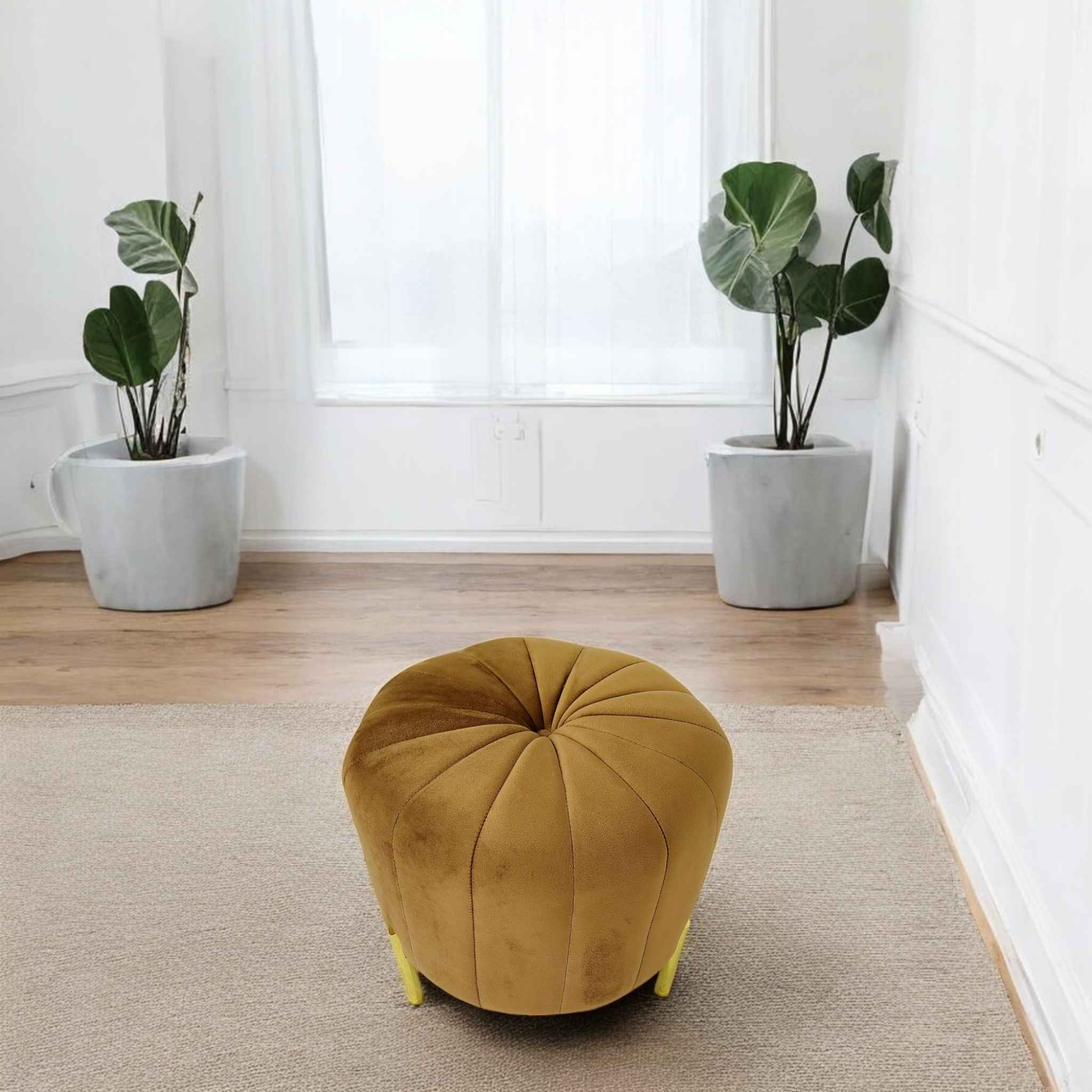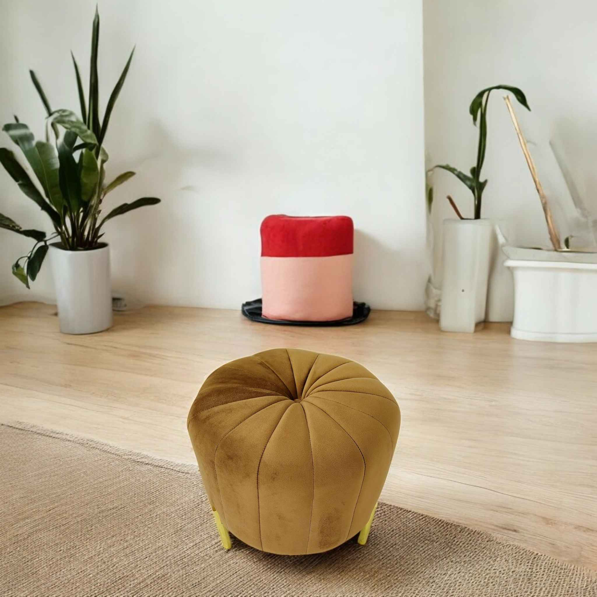 Complementing the sumptuous velvet fabric are the stunning golden metal legs. These legs not only provide stability and support but also add a touch of glam to the overall design. The combination of luxurious velvet and sleek metal creates a harmonious balance of materials, making this ottoman a perfect fit for contemporary decor styles.