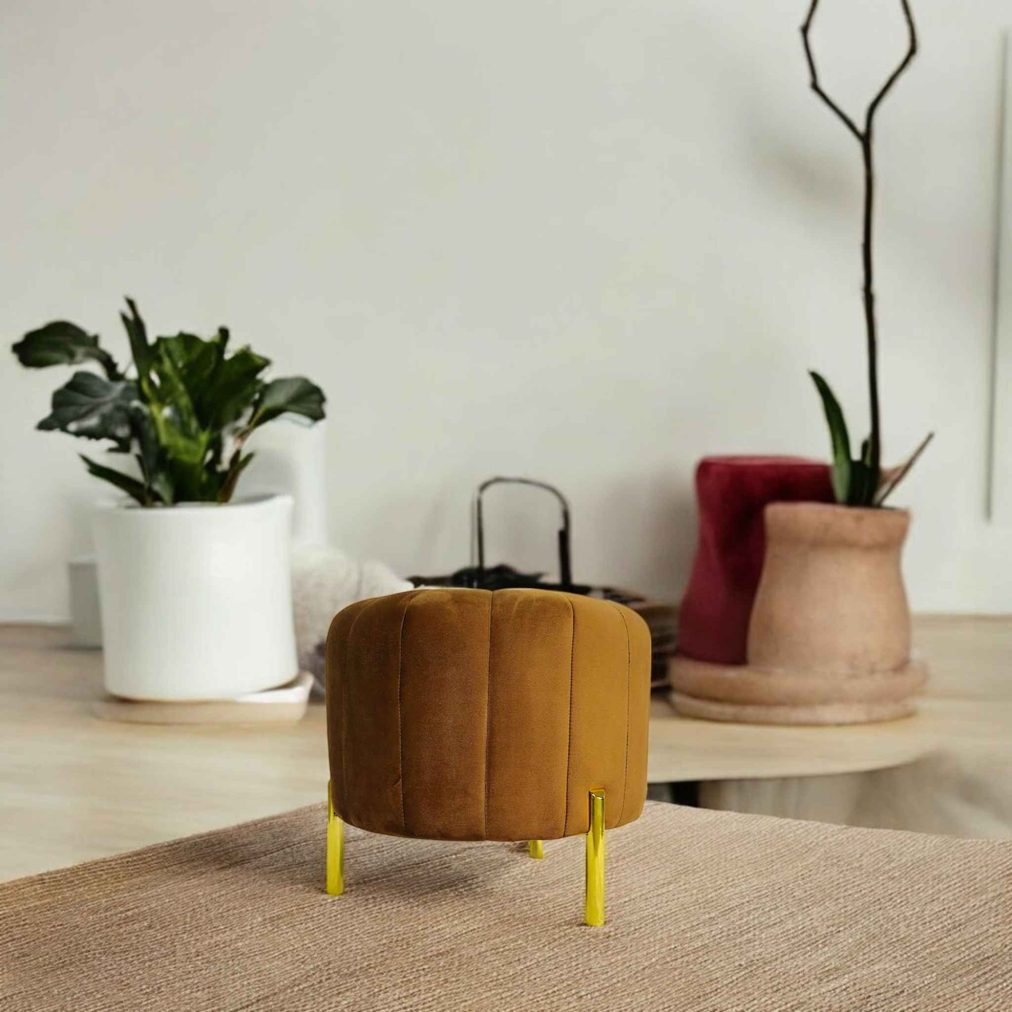 In summary, the Luxury Brown Velvet Round Ottoman with Golden Metal Legs for Modern Interiors is a perfect blend of luxury and practicality. Its elegant design, combined with high-quality materials, makes it an ideal choice for those looking to enhance their living spaces. Treat yourself to this exquisite addition that promises to offer style, comfort, and versatility for years to come.