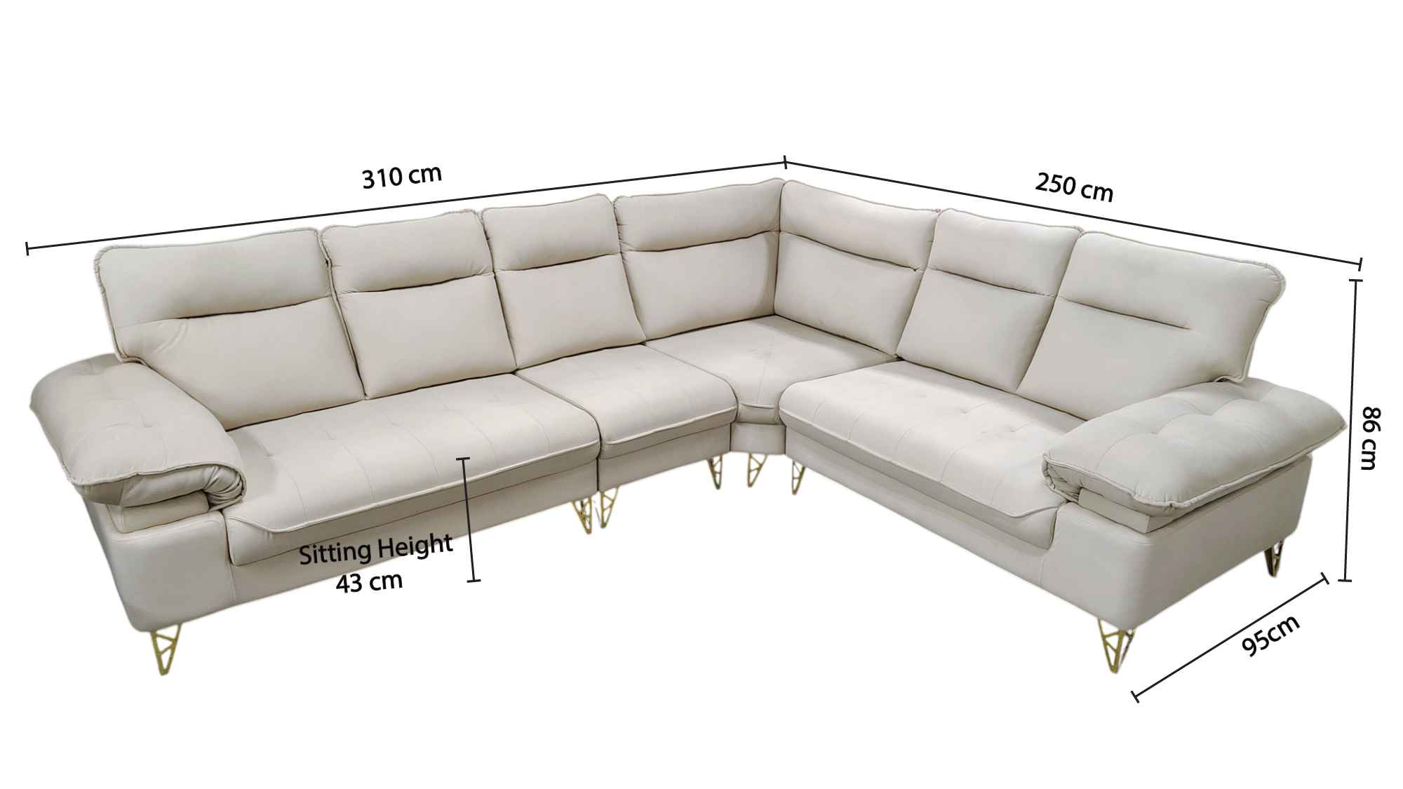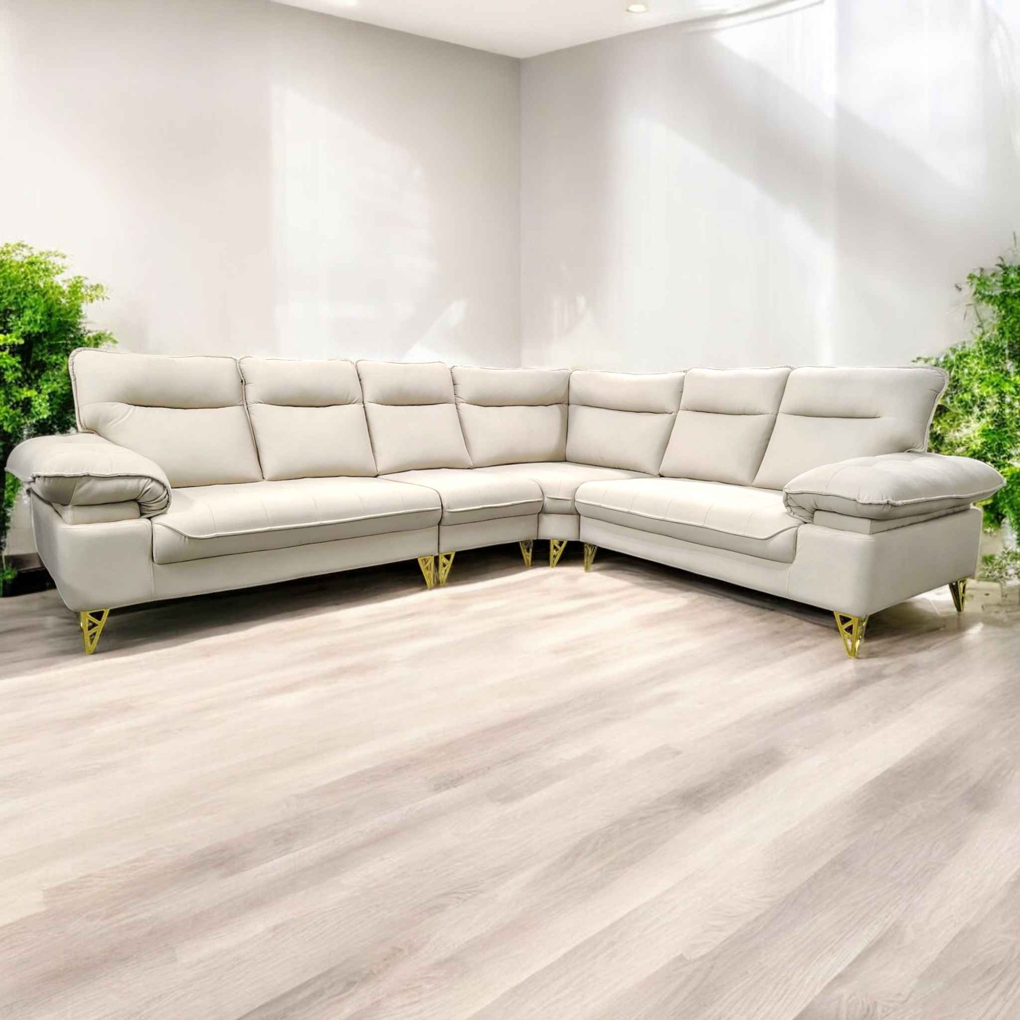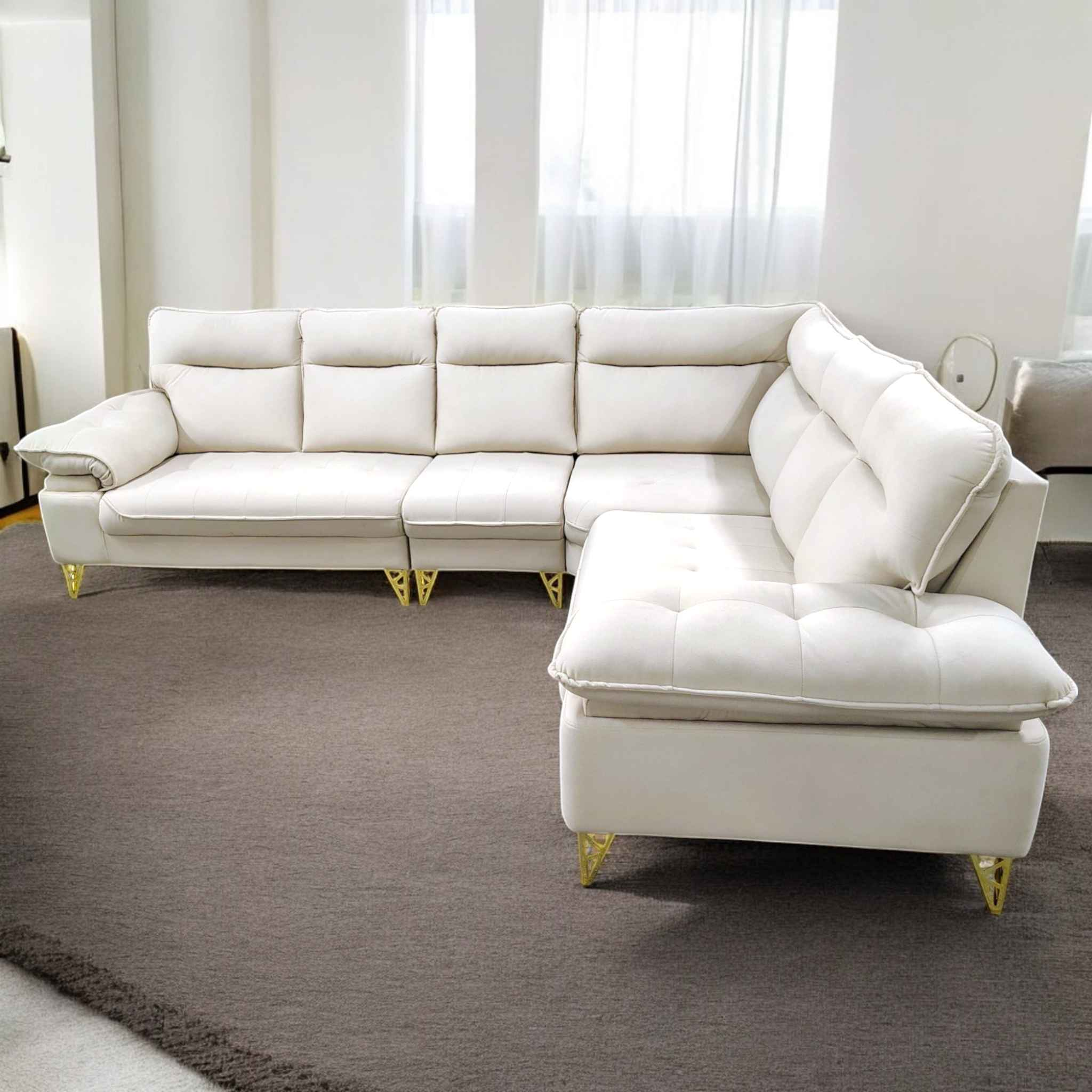 Moreover, this sofa's white upholstery opens doors to a range of color palettes. You can easily incorporate different colors and patterns through cushions, rugs, and curtains, making it adaptable with changing trends over time. The gold legs offer a timeless charm, ensuring that your sectional remains fashionable despite the evolution of interior design trends.