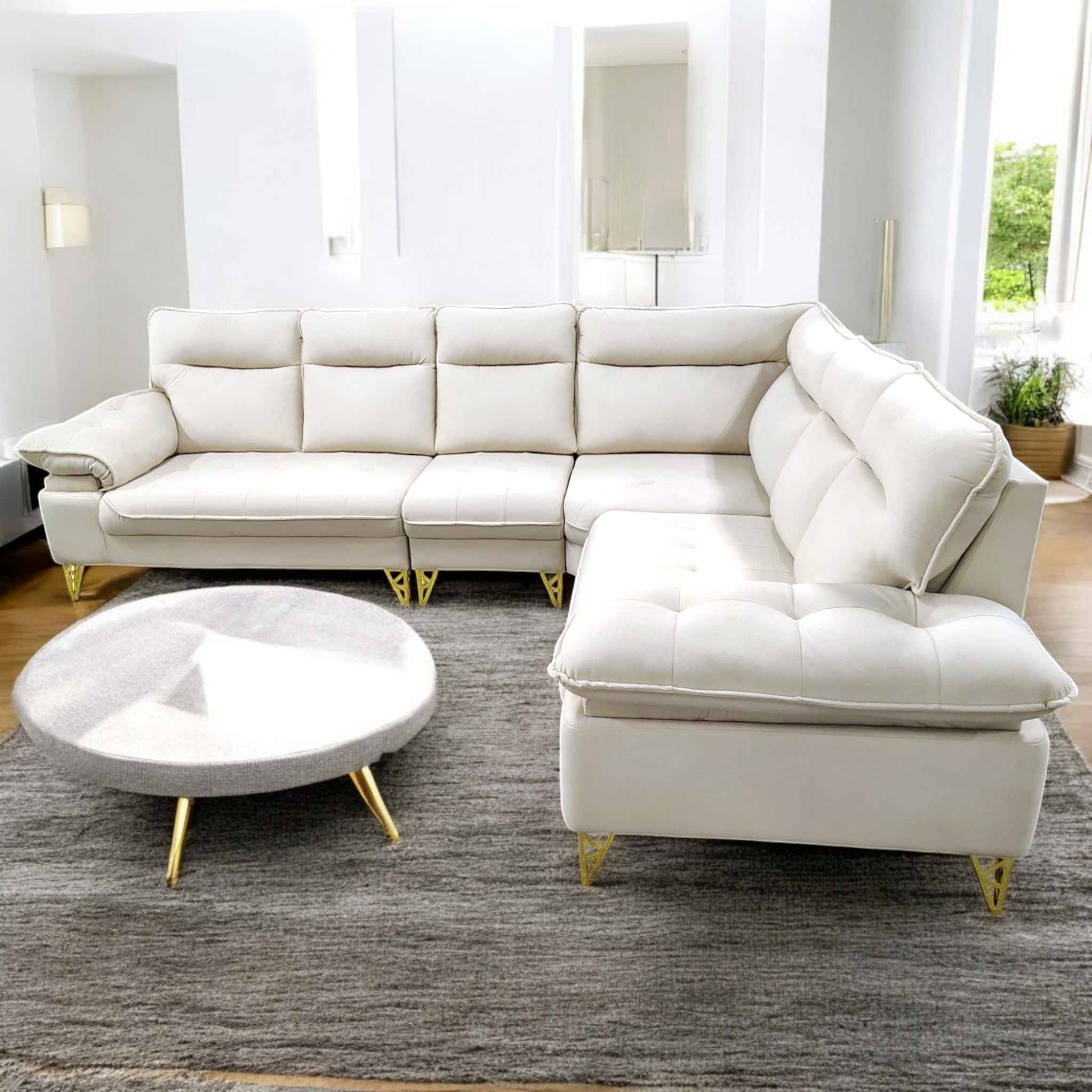 In conclusion, choosing a modern l-shape sectional sofa with white upholstery and gold legs is a decision rooted in both practicality and aesthetics. It is designed to enhance the living experience, offering stylish comfort that aligns perfectly with modern living. Elevate your home with this luxurious sectional, and enjoy the sophisticated touch it brings to your living room.