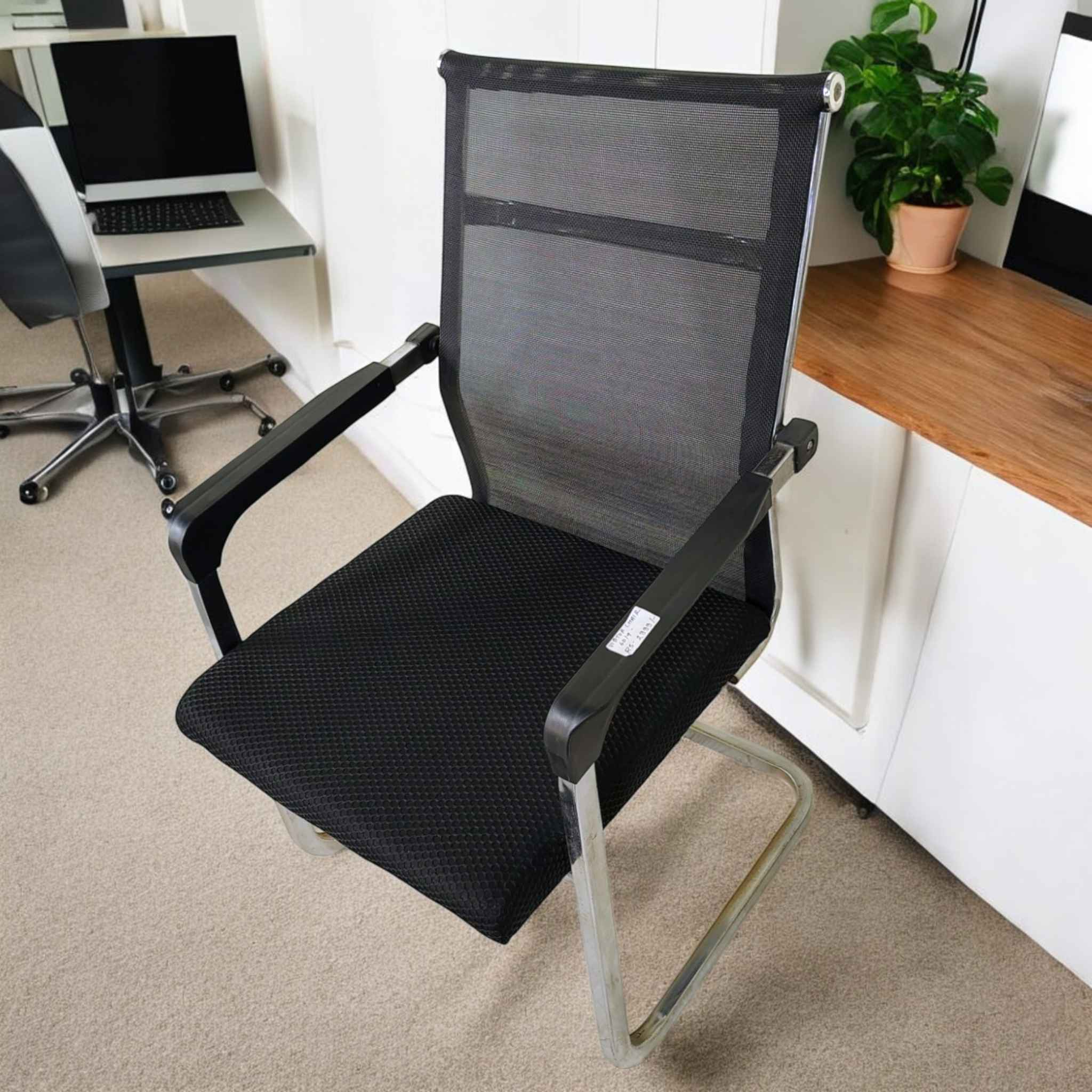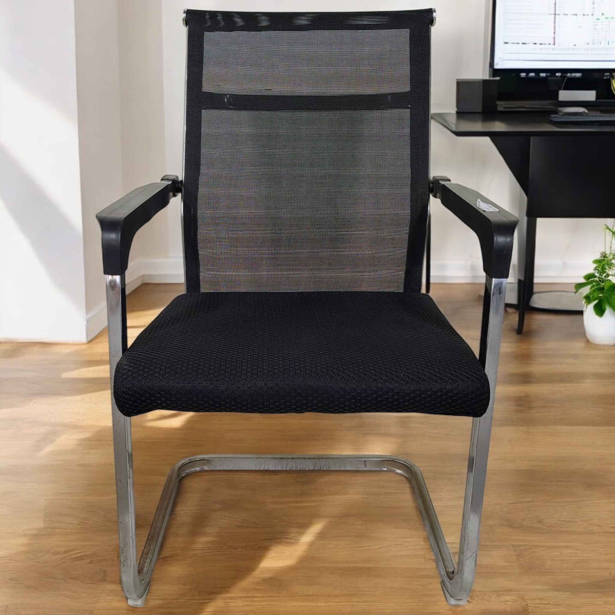 One of the standout aspects of the Modern Mesh Visitor Chair is its chrome cantilever frame, which combines durability with a modern touch. The chrome finish adds a level of sophistication while ensuring the chair remains stable and strong. This is essential in high-traffic office areas where chairs may be moved frequently. The stylish frame complements the mesh seating, creating an inviting atmosphere for clients, partners, and employees alike.