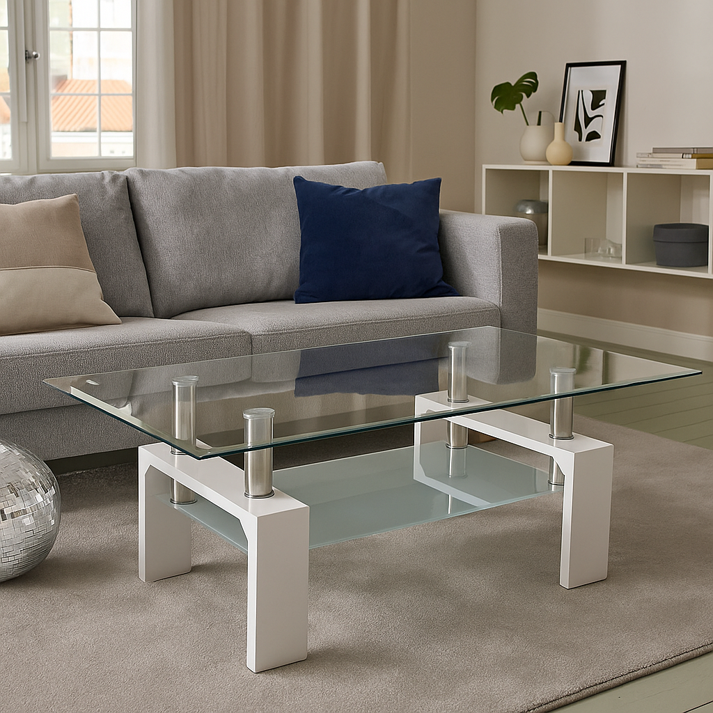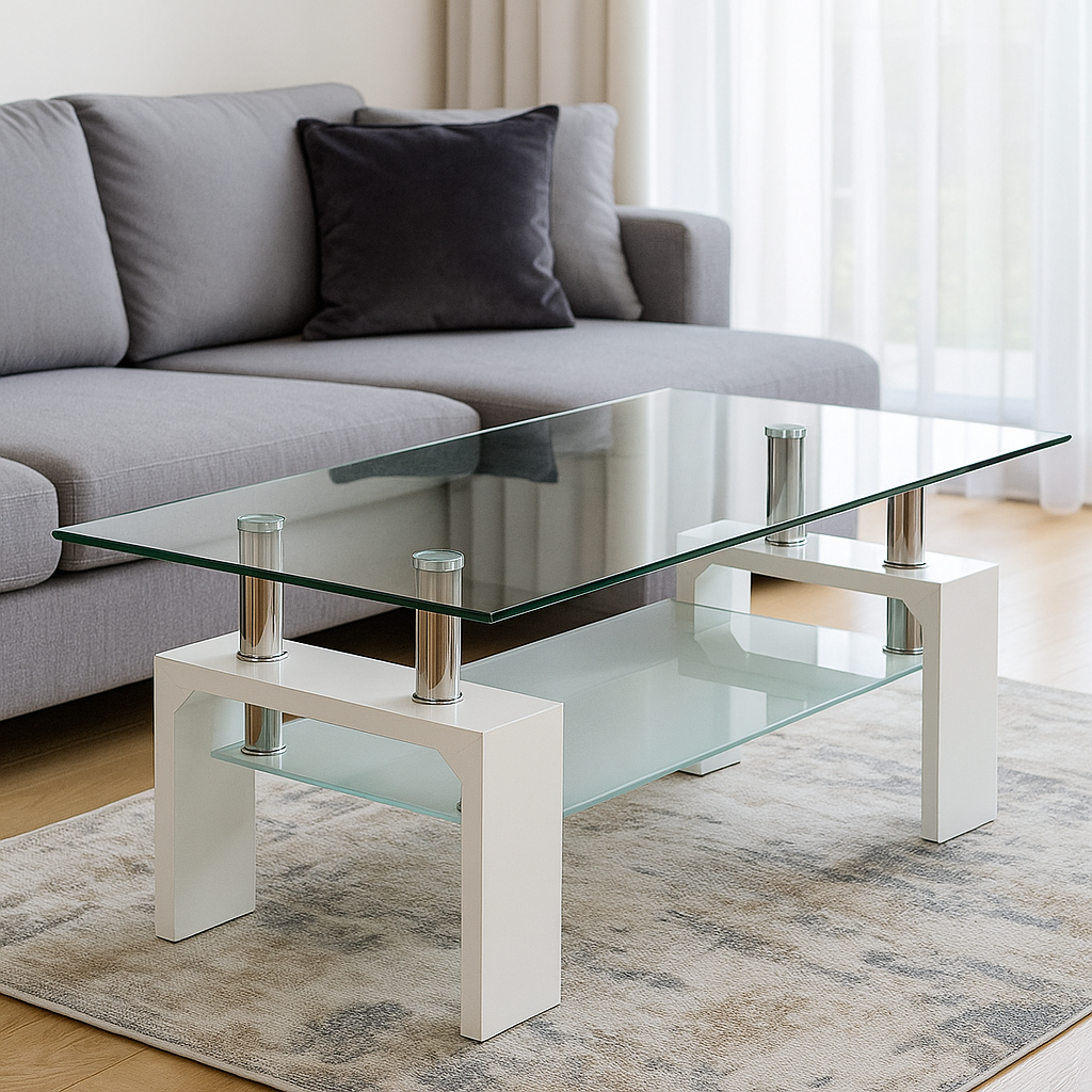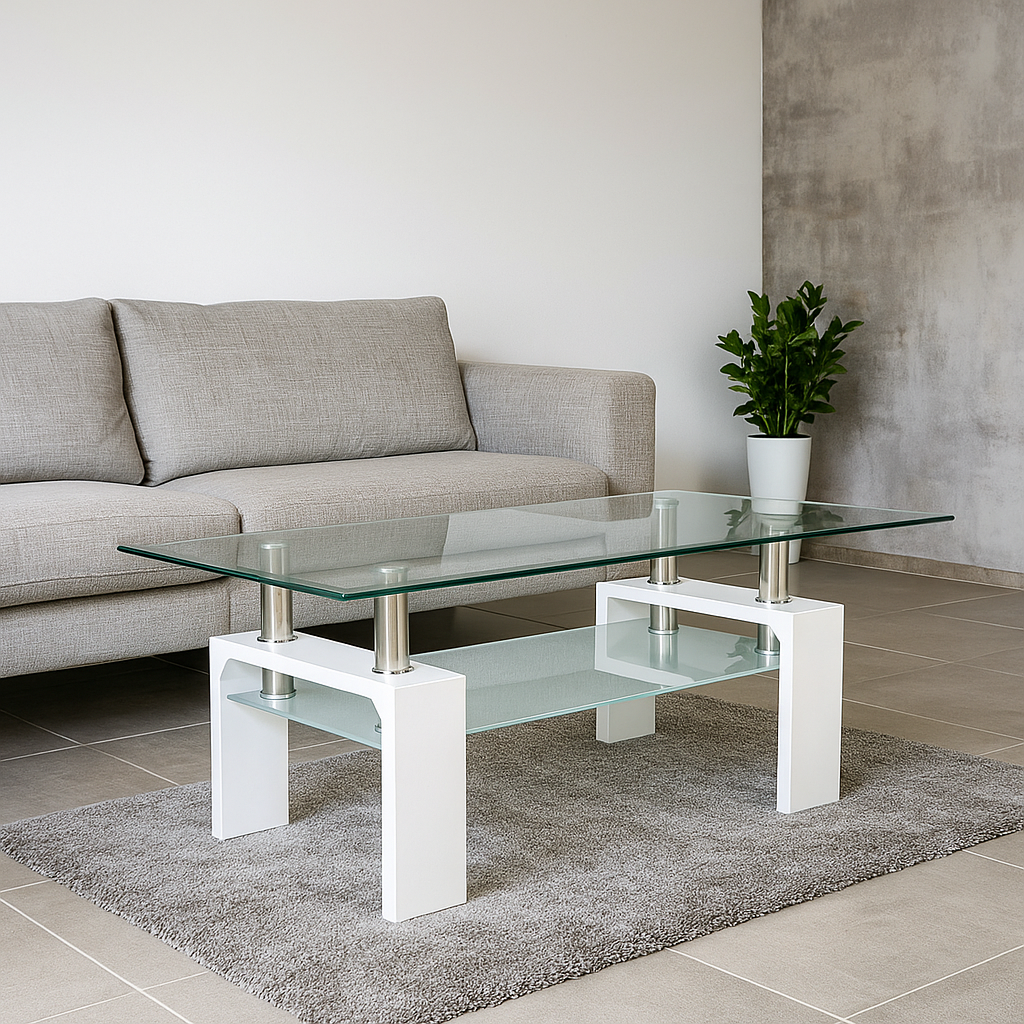 Valencia Modern Glass Center Table – Clear Tempered Glass with White Base