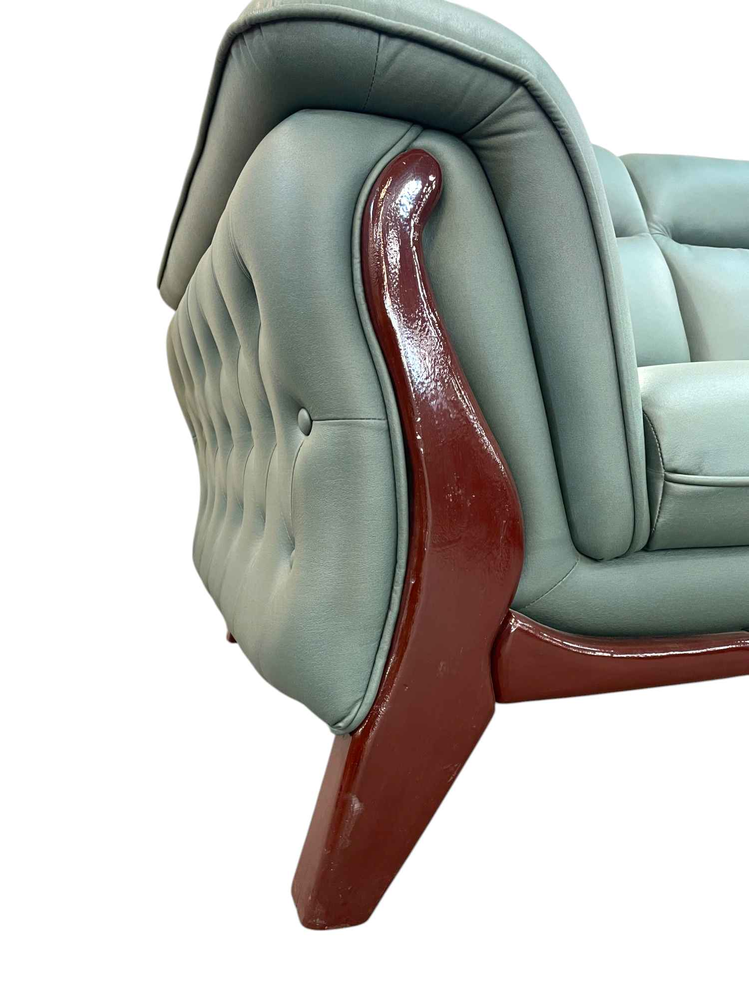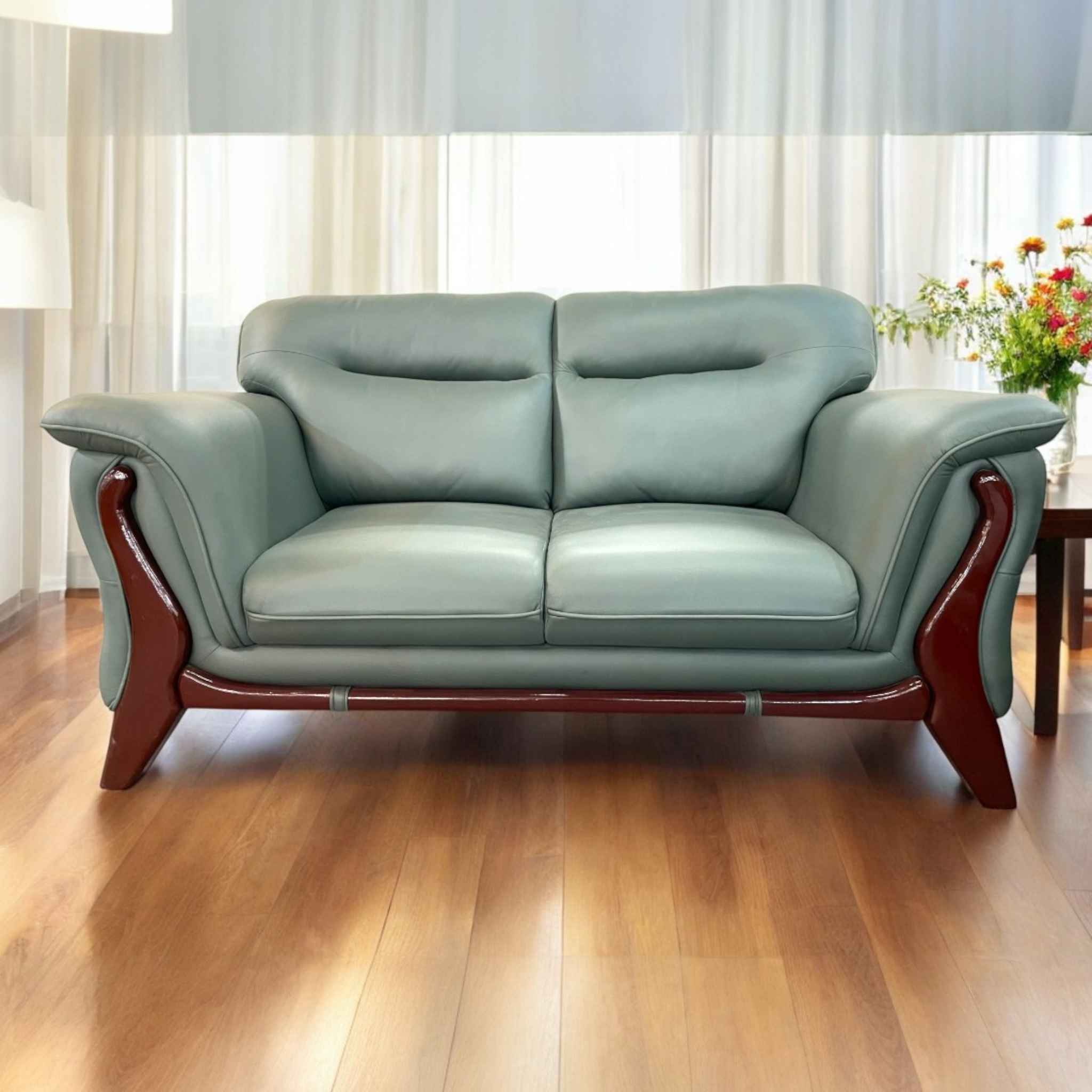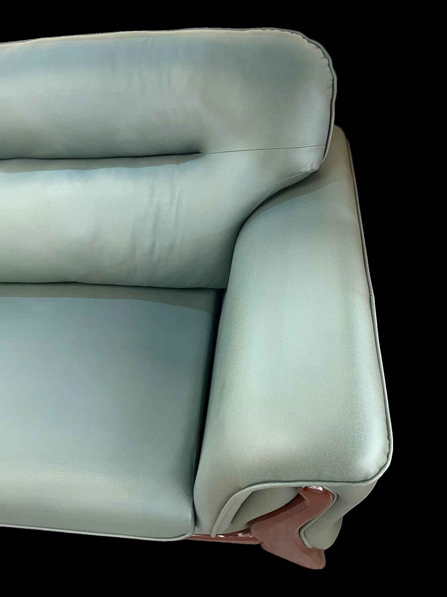 The sofa’s legs, made of high-quality wood, add to its aesthetic appeal. Select finishes ranging from natural wood tones to dark stains complement the leather beautifully. These details establish a distinctive character, setting the Mid-Century Leather Sofa apart in any living environment.