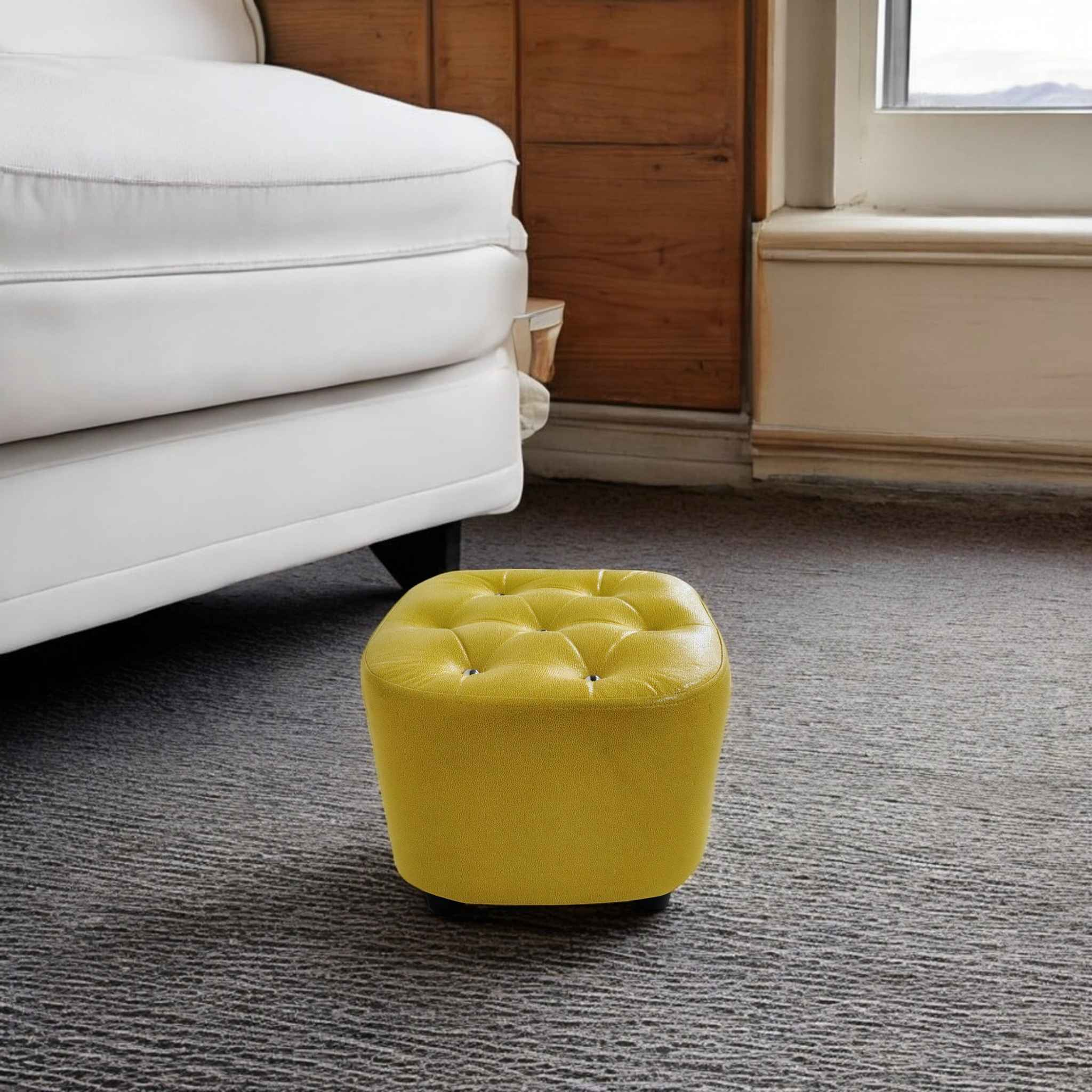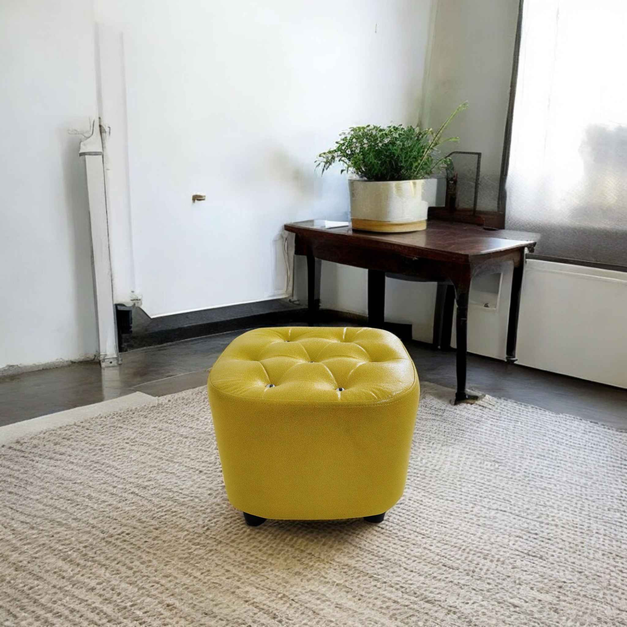 Yellow Tufted Leather Ottoman - A Stylish Addition to Your Living Room or Bedroom